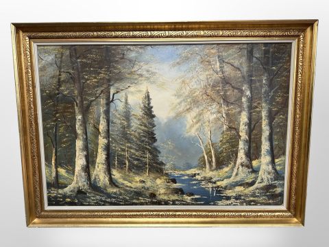 Danish School : Forest stream, oil on canvas, 89 cm x 59 cm