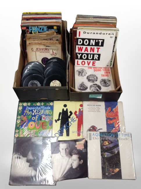 Two boxes of LP's and 45's, Duran Duran, Depeche Mode etc