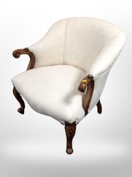 A Victorian style mahogany armchair in beige fabric, width 72 cm