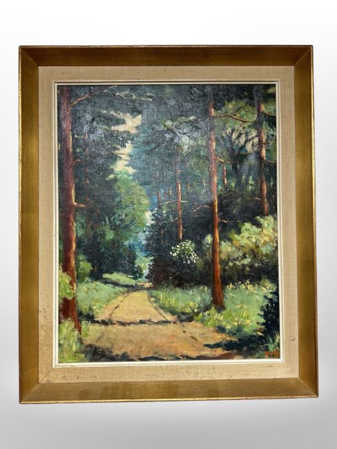 Danish School : Woodland path, oil on canvas, 49 cm x 39 cm