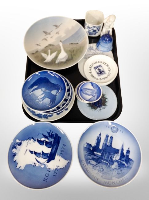 A group of Bing and Grondahl blue and white plates, Royal Copenhagen etc