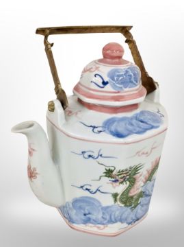 A large Oriental style porcelain teapot, overall height 36 cm