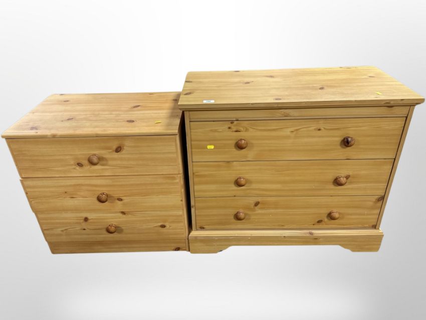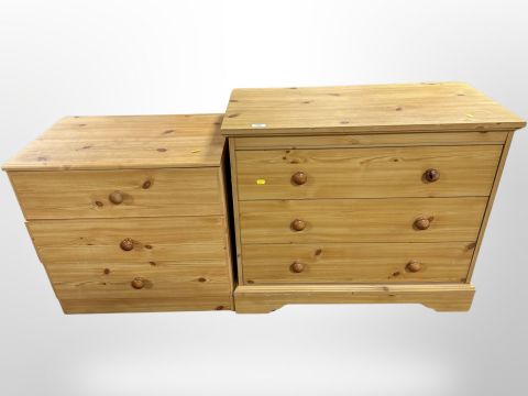 Two contemporary pine three drawer chests, largest width 82 cm