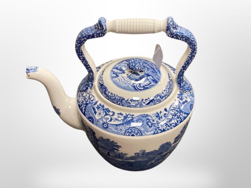 A large Spode Italian blue and white teapot, circa 1970's, height 32 cm