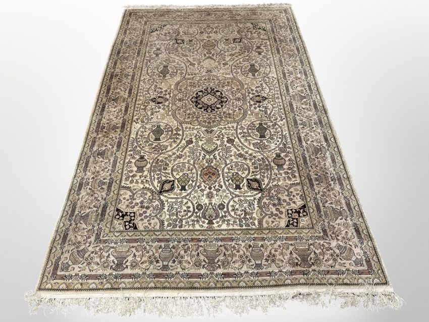 A Kashmir silk-piled rug, 153 cm x 250 cm