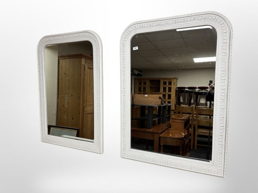 A pair of painted overmantel mirrors, each 105 cm x 75 cm