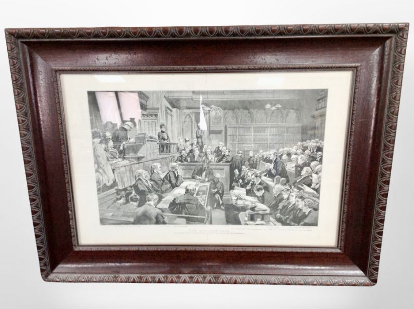 A monochrome engraving of The Baccarat Case, 48 cm x 30 cm, in carved frame