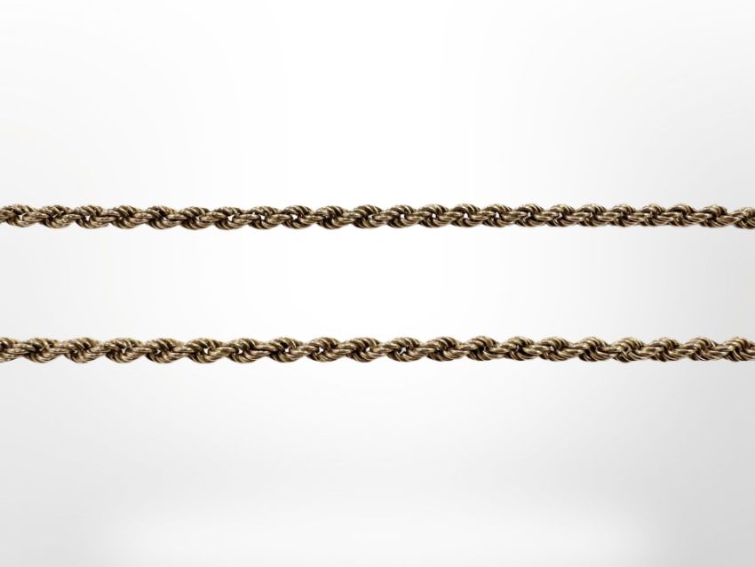 A 9ct yellow gold rope twist necklace, length 53 cm.