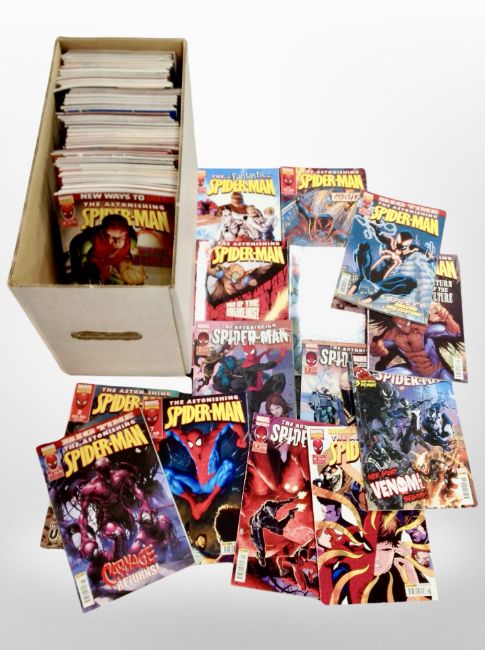 A box of contemporary Marvel comics, The Astonishing Spider man.
