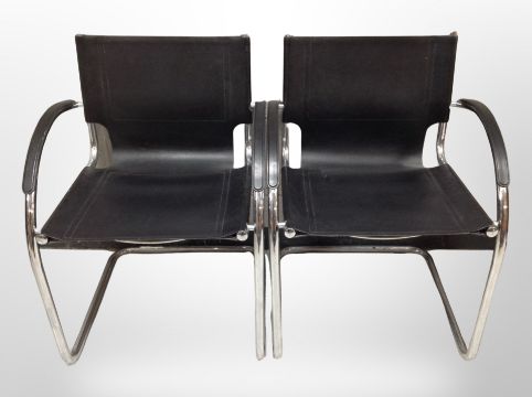 A pair of 20th century Danish chrome framed and black vinyl armchairs