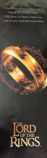 A Lord of the Rings door poster together with other posters, some sealed, Yu-Gi-Oh, The Simpsons, Pulp Fiction etc.