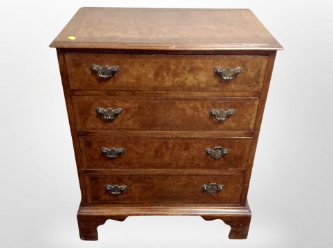 A Georgian style burr walnut four drawer chest, width 62 cm