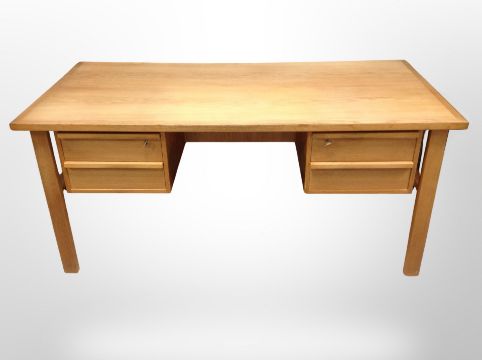 A 20th century Danish oak writing desk, fitted four drawers, width 160 cm