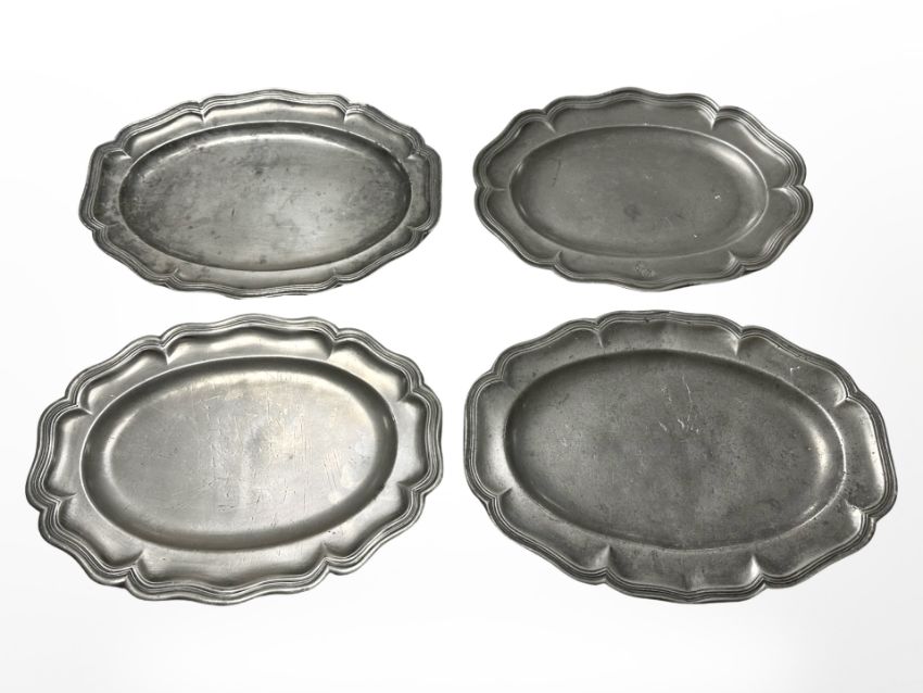 Four 19th century pewter plates, largest 32 cm wide