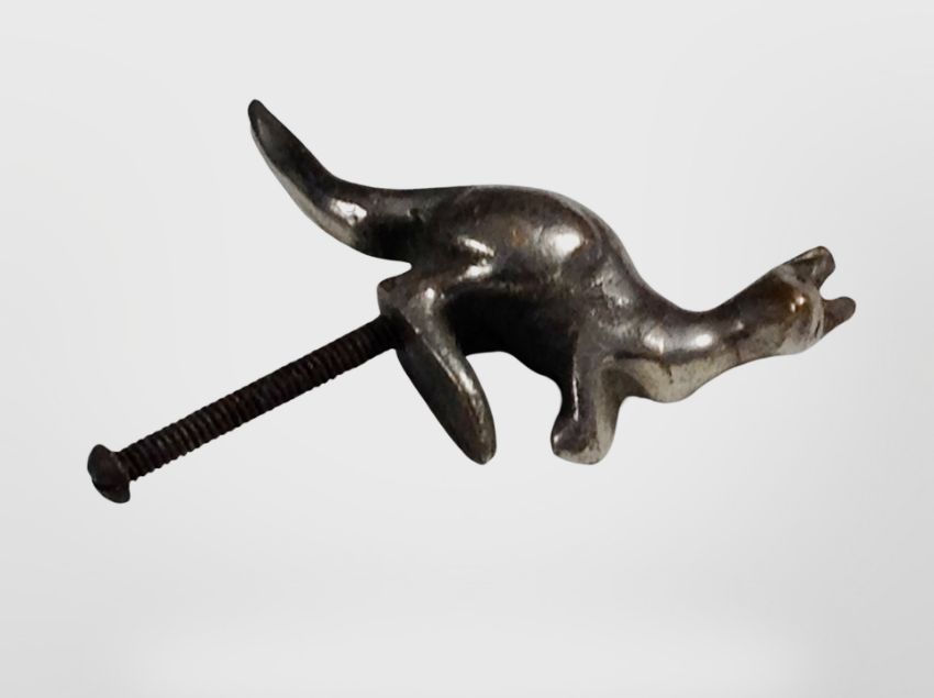 A die cast chrome car mascot in the form of a Kangaroo, length 9.5 cm including bolt