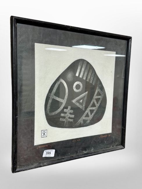 Tarmo Puudist : Nordic symbol, monochrome print, signed, 28cm x 28cm.