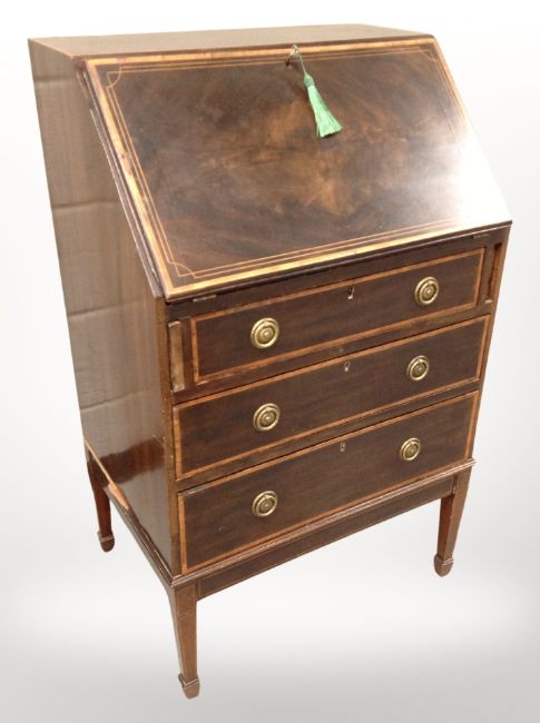 A late Victorian inlaid mahogany lady's bureau, width 61 cm