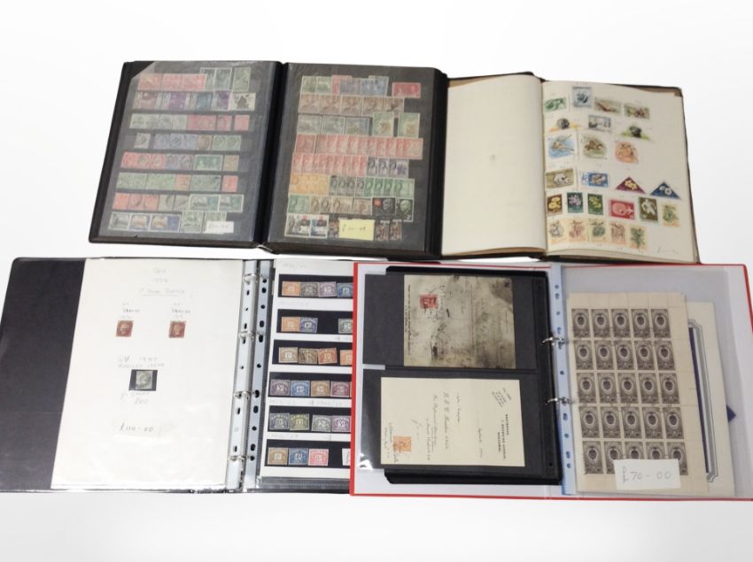 Four albums of World Stamps including British Overseas territories, Hungary, 1854 Penny reds, Victorian half penny blues etc