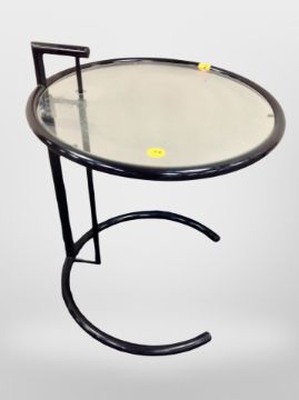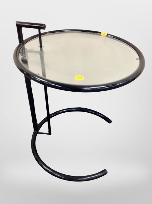 A Scandinavian circular glass lamp table, height 54 cm