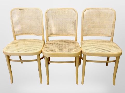 Three Scandinavian bentwood chairs with cane seats