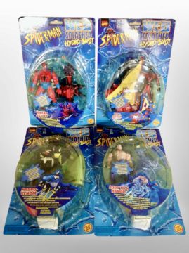 Four Toy Biz Marvel Comic's Spider-Man toys in retail packaging.