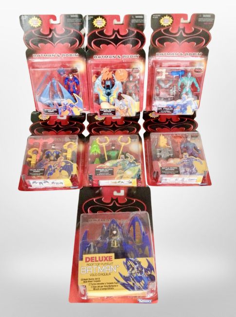 Seven Kenner Batman and Robin collectors figures, in retail pacakaging.