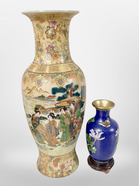 A 20th century Japanese earthenware vase, height 44 cm, together with a cloisonne vase