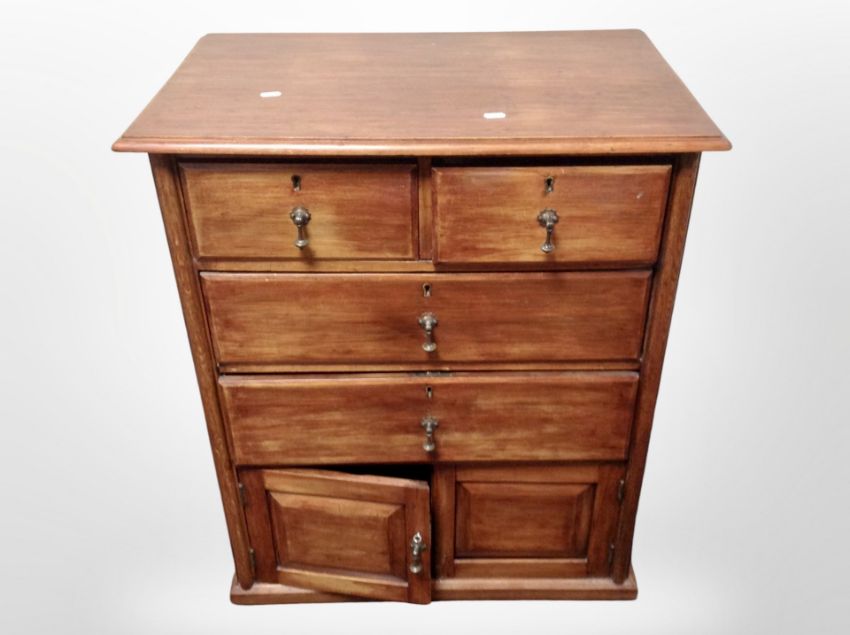 An Edwardian linen chest fitted cupboards and drawers, width 68 cm