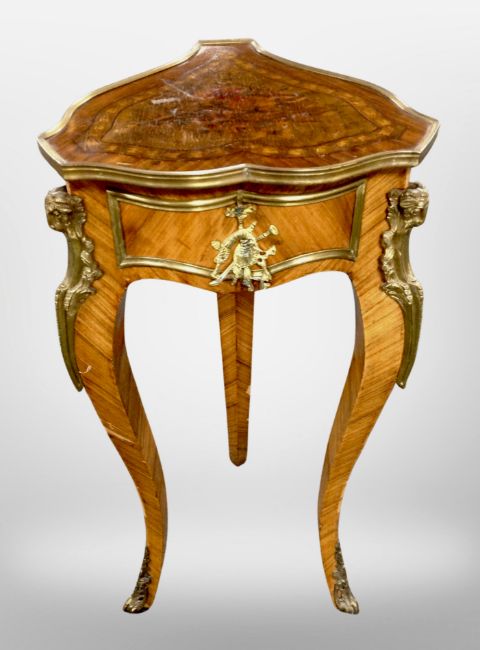 An early 20th century Continental Kingwood veneered and gilt metal mounted tripod jardinere stand on cabriole legs, height 85 cm