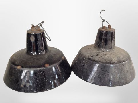 A box of 20th century Scandinavian pendant light fittings, angle-poise lamps, table lamp.