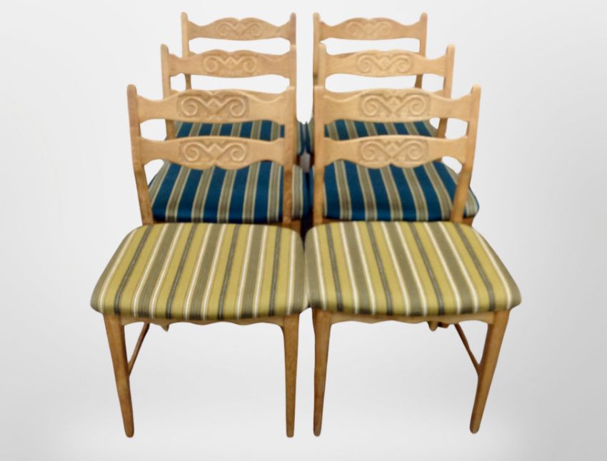 A set of six Danish blond oak dining chairs