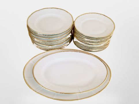 26 Bing and Grondahl white and gilt porcelain dinner plates.