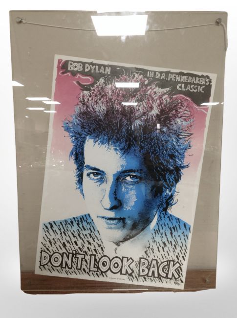 A Bob Dylan poster in perspex frame, 80cm x 58cm overall.