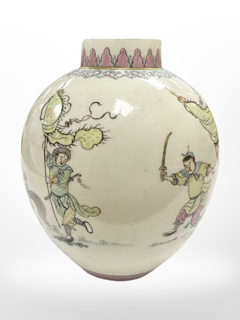 A very fine Chinese porcelain miniature bottle vase, decorated with scenes of warriors on horseback, Yongzheng (1723-1735) mark to base, probably later, height 8 cm.