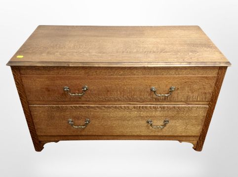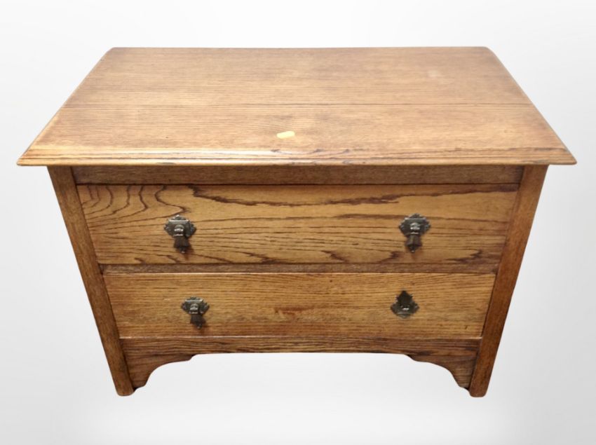 Two Edwardian oak chests of two drawers, largest 91 cm wide