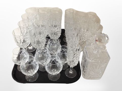A crystal decanter and a quantity of wine glasses, rummers, etc.