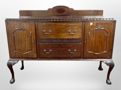 An early 20th century mahogany sideboard on claw and ball feet, 153 cm x 54 cm x 100 cm
