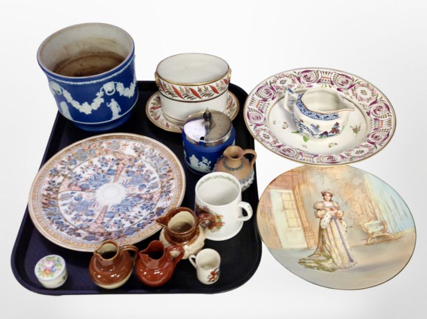 A Wedgwood Jasperware planter, together with a similar preserve pot, other late-19th century and later ceramics.