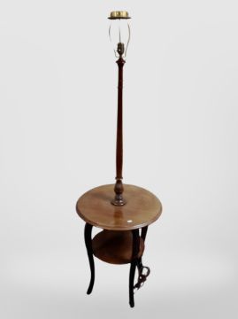 A 20th-century Danish mahogany standard lamp occasional table, diameter 54cm.