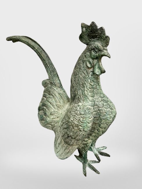 A patinated bronze cockerel figure, height 29 cm.