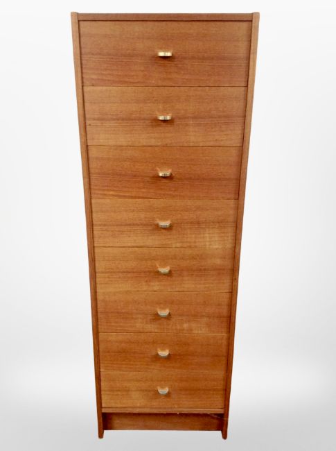 A 20th-century Danish teak eight-drawer chest, 46cm x 41cm x 137cm.