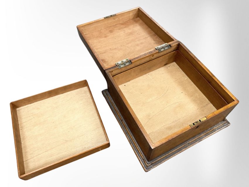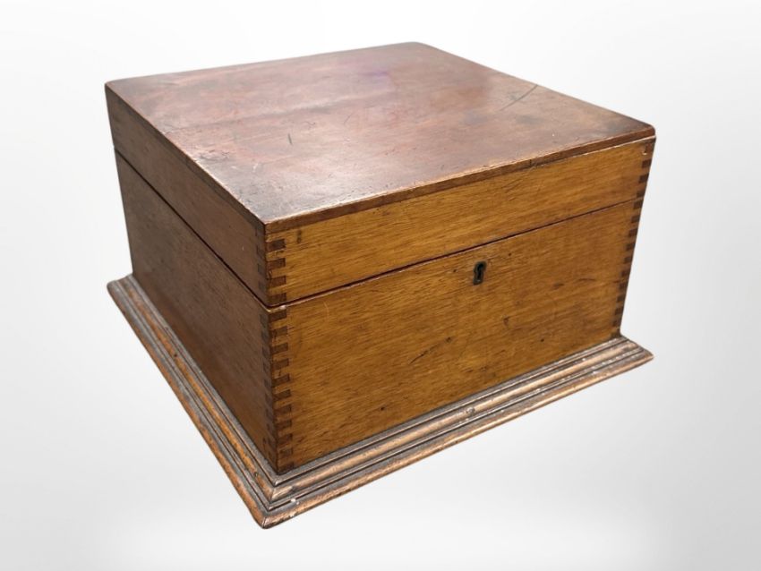 A Victorian mahogany box with two-division interior, 29cm x 29cm x 17cm.