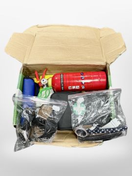 A car emergency breakdown kit together with Gent's watches by Jack Wills, Ben Sherman etc
