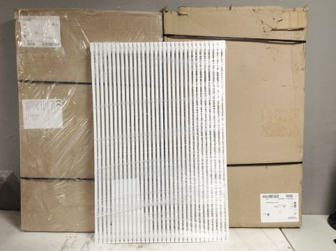 A 900 mm x 611 mm radiator, together with several others sealed in packaging