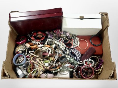 A box of several contemporary jewellery boxes and a large quantity of costume jewellery