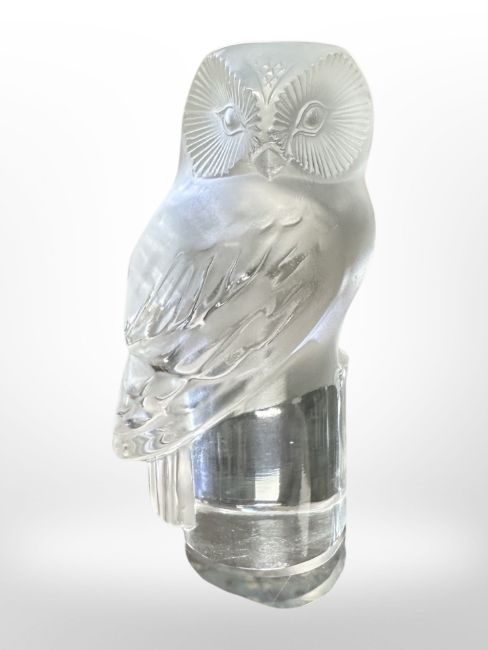 A Lalique owl, height 9cm, signed 'Lalique France' to base.