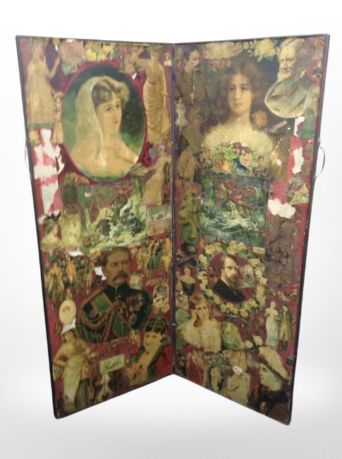 A Victorian scrap-work two-fold screen, each panel 162 cm high x 62 cm wide