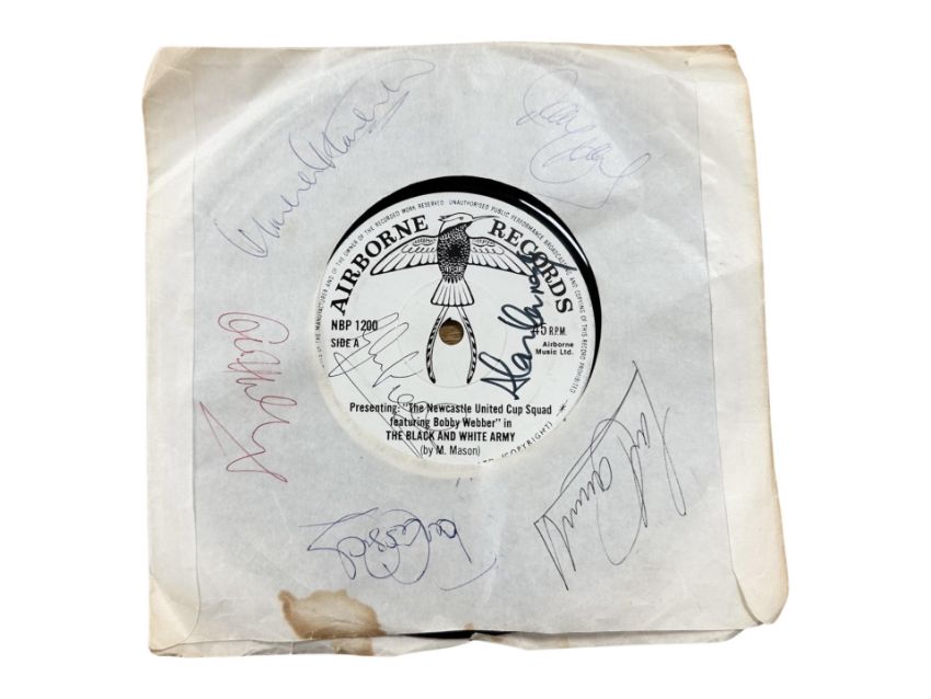 Airborne Records : The Newcastle United Cup Squad featuring Bobby Webber, in the Black and White Army, with side B 'On the Way to Wembley', signed by various team members to include Tommy Cassidy, Gordon Lee, Malcolm McDonald, etc.