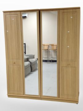 A contemporary oak effect mirror door wardrobe, width 154 cm x 54 cm deep x 189 cm high