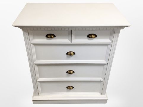 A contemporary painted five drawer chest, width 85 cm x 50 cm x 95 cm